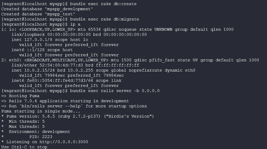 Chúng ta có thể chạy ứng dụng của mình với bundle exec rails server -b 0.0.0.0