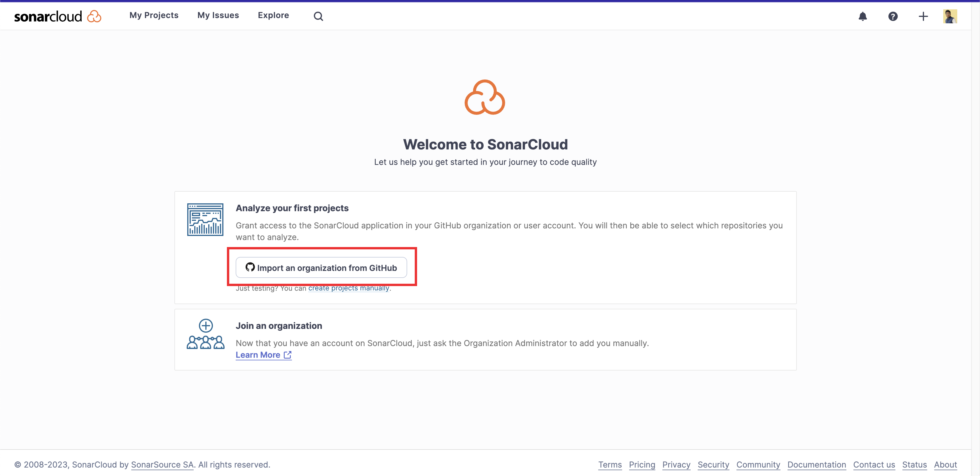 - Trong SonarCloud, bạn có thể tạo một tổ chức.