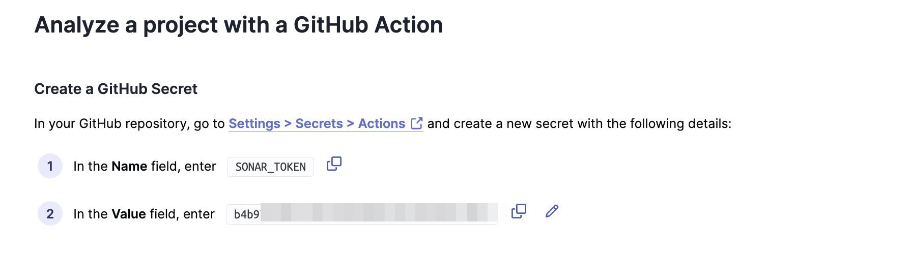 - Điều này sẽ hiển thị một số bước để tích hợp SonarCloud với GitHub actions. Ở đầu trang, bạn sẽ thấy SONAR_TOKEN, chúng ta sẽ thêm nó làm Bí mật GitHub sau.