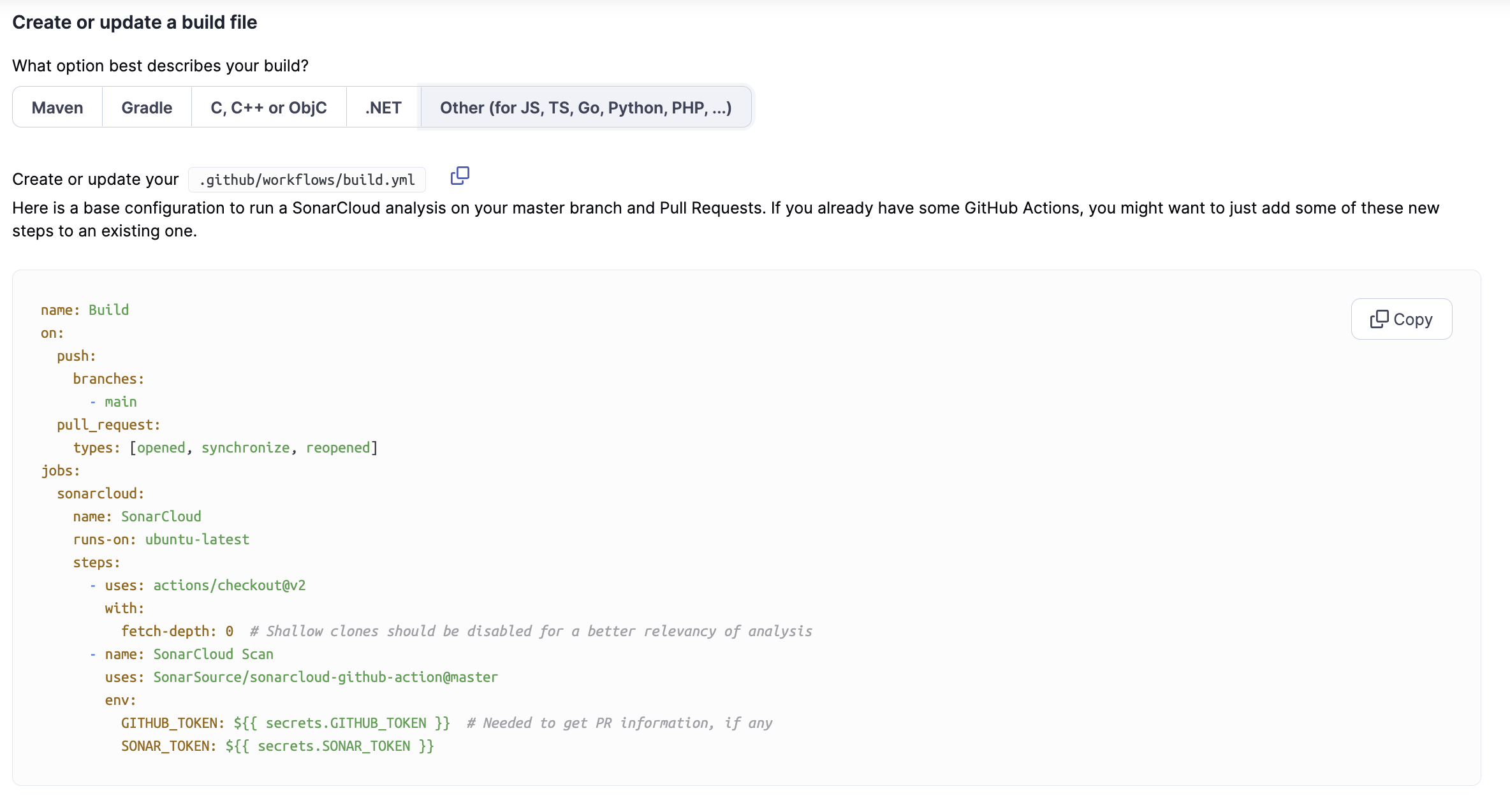 uses: SonarSource/sonarcloud-github-action@master