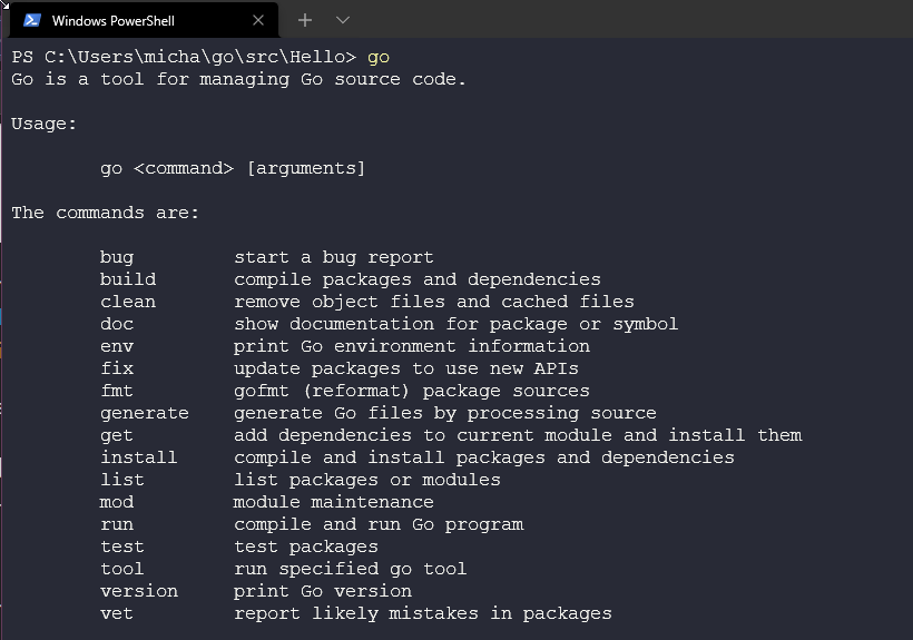 Khi cài đặt Go vào ngày 8, chúng ta đã cài đặt một thứ được gọi là công cụ Go bao gồm một số chương trình cho phép xây dựng và xử lý các tệp mã nguồn Go của mình. Một trong số những công cụ đó là go
