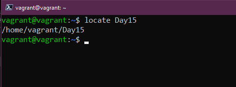 Làm cách nào chúng ta có thể tìm tệp trong Linux? locate sẽ cho phép chúng ta tìm kiếm hệ thống tệp của mình. Nếu chúng ta sử dụng locate Day15, nó sẽ báo lại vị trí của tệp. Nếu bạn biết rằng tệp tồn tại nhưng bạn nhận được kết quả tìm kiếm rỗng thì hãy chạy lệnh sudo updatedb để lập chỉ mục tất cả các tệp trong hệ thống tệp, sau đó chạy lại lệnh locate. Nếu bạn không có sẵn gói lệnh locate, bạn có thể cài đặt nó bằng lệnh sau sudo apt install mlocate