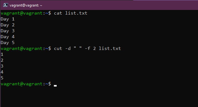 Tôi cũng không đề cập đến lệnh cut, lệnh này cho phép chúng ta xóa các phần khỏi mỗi dòng của tệp. Nó có thể được sử dụng để cắt các phần của một dòng theo vị trí byte, ký tự và trường. Lệnh cut -d " " -f 2 list.txt cho phép chúng ta xóa chữ cái đầu tiên mà và chỉ hiển thị số. Có rất nhiều kết hợp có thể được sử dụng với lệnh này, tôi chắc chắn rằng đã có lúc tôi đã dành quá nhiều thời gian để sử dụng lệnh này trong khi có thể trích xuất dữ liệu nhanh hơn theo cách thủ công.