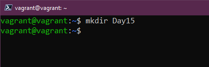 Bây giờ chúng ta hãy xem xét một số lệnh giúp chúng ta có thể tạo một thứ trong hệ thống của mình và có thể quan sát được chúng trong terminal. Trước hết, chúng ta có mkdir cho phép chúng ta tạo một thư mục trong hệ thống của mình. Có thể tạo một thư mục trong thư mục chính có tên Day15 mkdir Day15
