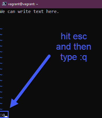 Câu hỏi đầu tiên có thể là "Làm cách nào để thoát vim?" đầu tiên là nhấn escape và nếu chúng ta không thực hiện bất kỳ thay đổi nào thì nhập :q