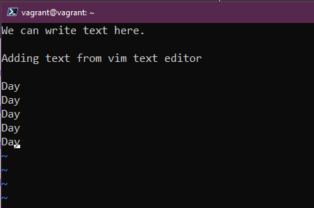 Chúng ta có thể chuyển sang vim bằng lệnh vim hoặc nếu muốn chỉnh sửa tệp txt của mình, chúng ta có thể chạy lệnh vim 90DaysOfDevOps.txt nhưng trước tiên bạn sẽ thấy thiếu các menu trợ giúp ở phía dưới so với nano
