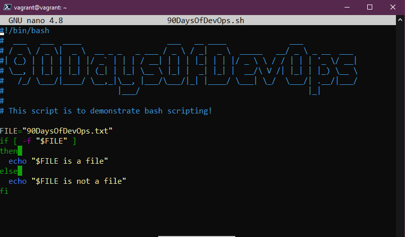 Tiếp theo là nano 90DaysOfDevOps.sh, thao tác này sẽ mở tập lệnh shell trống mới trong nano. Một lần nữa, bạn có thể chọn trình soạn thảo văn bản mà mình muốn ở đây.