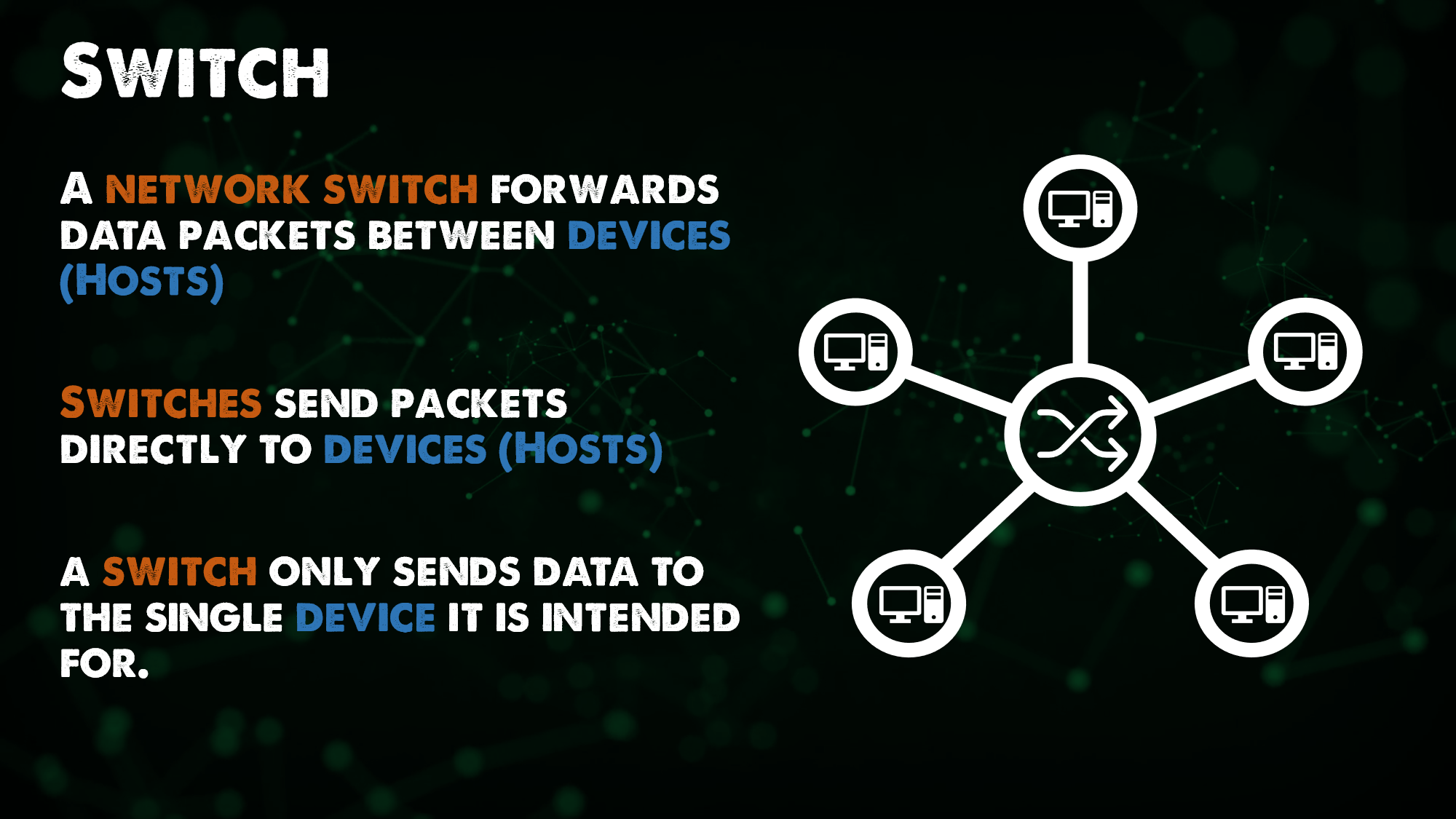 (Bộ chuyển mạch) Switch nhằm hỗ trợ giao tiếp bên trong một mạng. Một Switch sẽ chuyển tiếp các gói dữ liệu giữa các máy chủ.