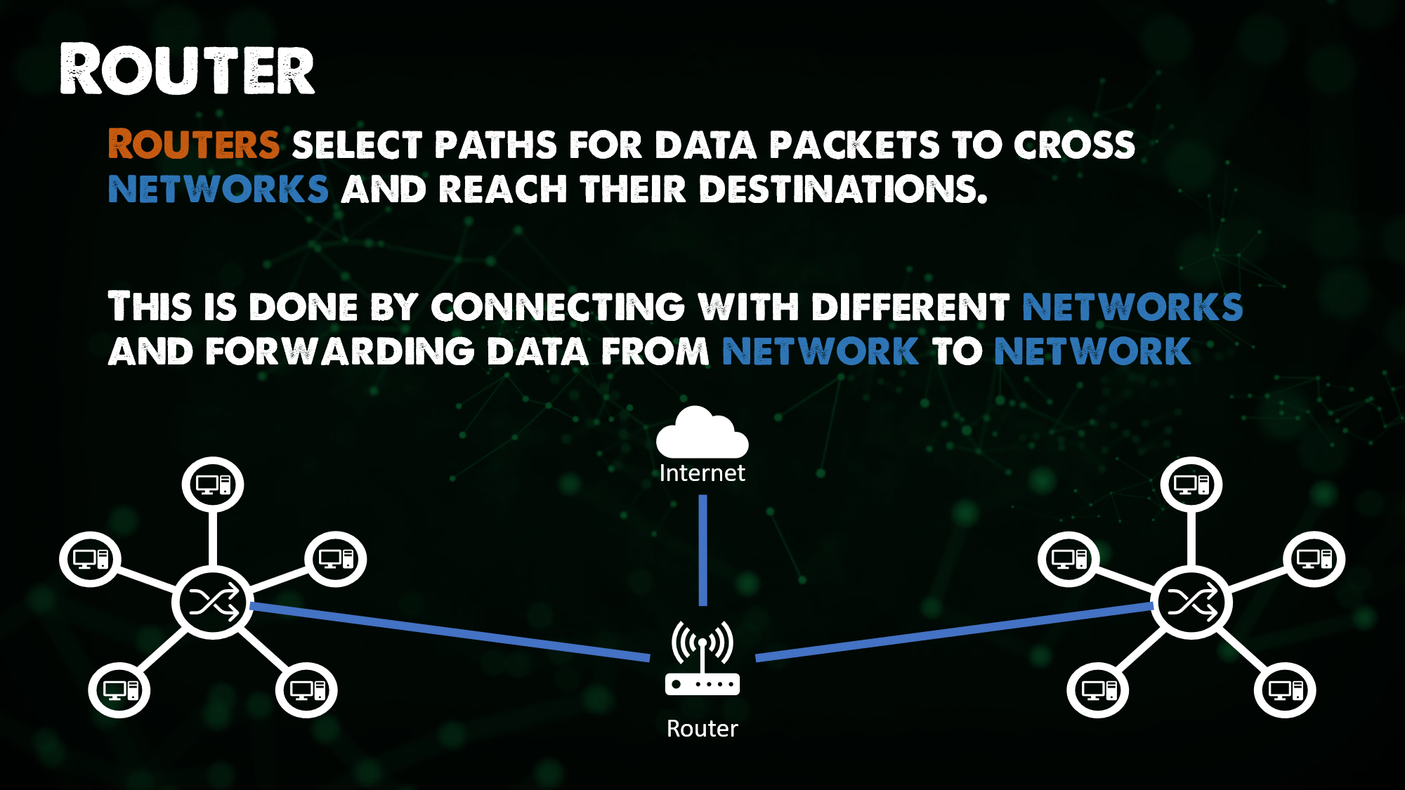 Bộ định tuyến (Router) nhằm giúp giao tiếp giữa các mạng. Như chúng ta đã nói trước đó, một switch hỗ trợ giao tiếp giữa các thiết bị trong cùng một mạng, trong khi đó một bộ định tuyến cho phép chúng ta kết nối các mạng lại với nhau.