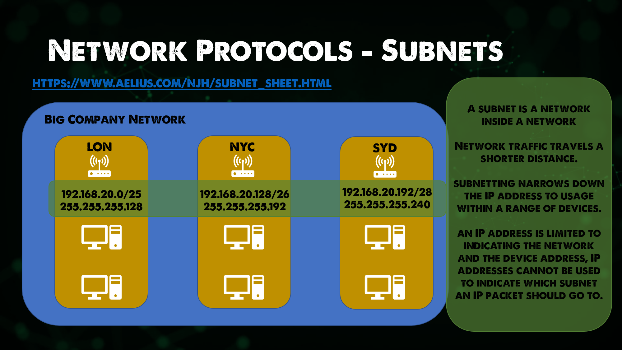 Một tổ chức quốc tế chịu trách nhiệm cho xác định số lượng và kích thước của các mạng con trong không gian địa chỉ IP giới hạn hiện có. Các mạng con cũng có thể được phân đoạn thành các mạng con nhỏ hơn cho những trường hợp như liên kết Điểm tới Điểm hoặc mạng con chỉ hỗ trợ một vài thiết bị.