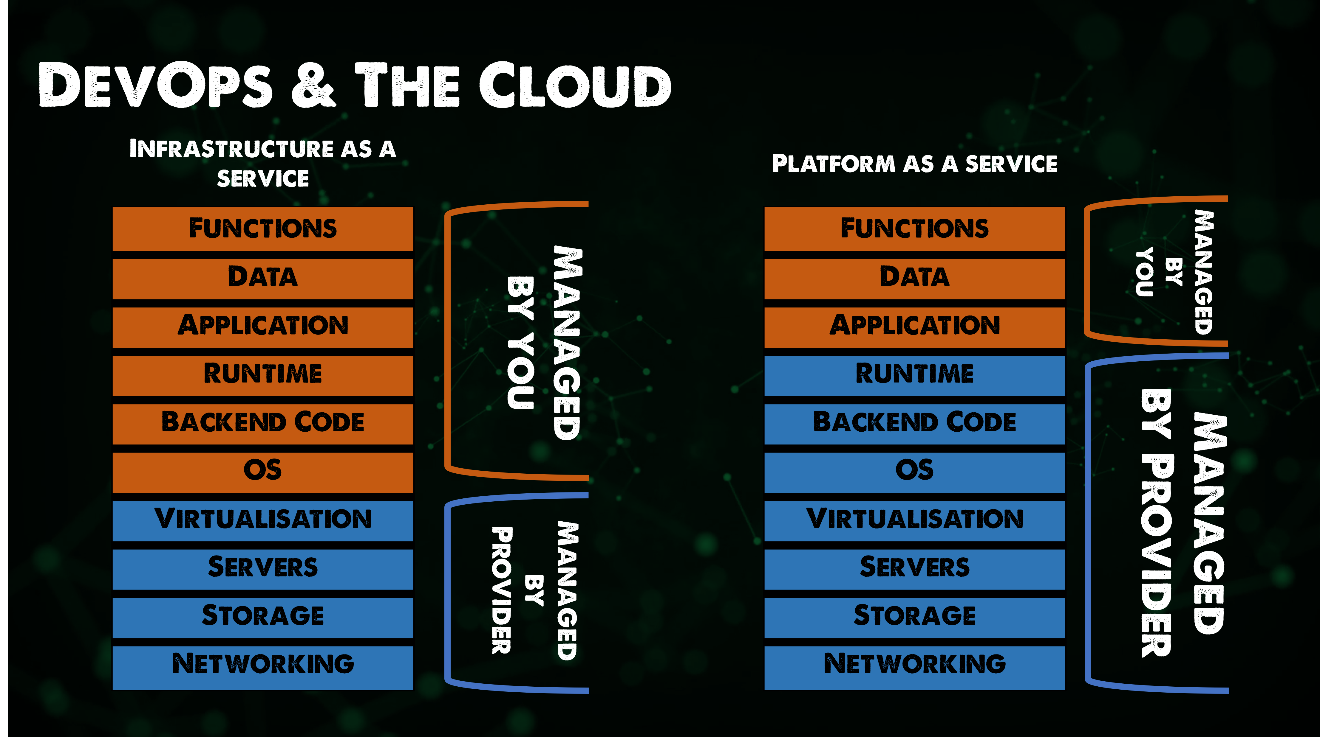 Chúng ta đã đề cập trong phần SaaS rằng điện toán đám mây đã loại bỏ trách nhiệm hoặc gánh nặng phải quản lý các thành phần của hệ thống. Nếu SaaS, chúng ta thấy rất nhiều lớp trừu tượng bị loại bỏ, tức là hệ thống vật lý, mạng, bộ lưu trữ, hệ điều hành và thậm chí là bản thân ứng dụng ở một mức độ nào đó. Khi nói tới điệu toán đám mây, có nhiều mức độ trừu tượng khác nhau mà chúng ta có thể xoá hoặc giữ tuỳ thuộc vào yêu cầu của bạn.