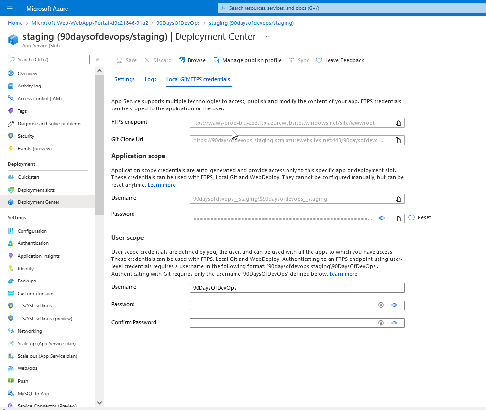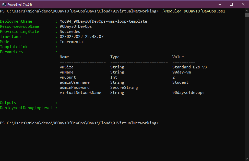 Tôi đã xem qua phần trên và thay đổi một vài tên cho phù hợp với #90DaysOfDevOps. Thay vì sử dụng Cloud Shell, tôi cũng đã đăng nhập bằng người dùng mới được tạo vào những ngày trước sử dụng Azure CLI trên máy Windows của mình.