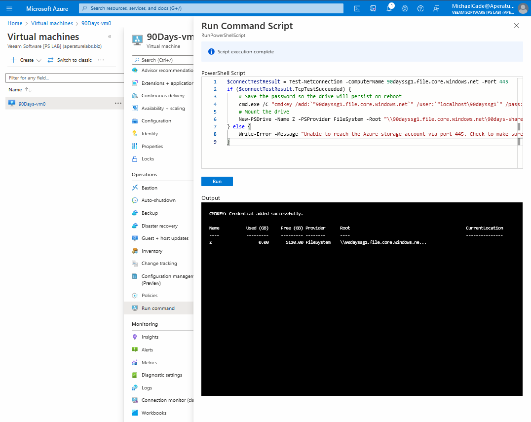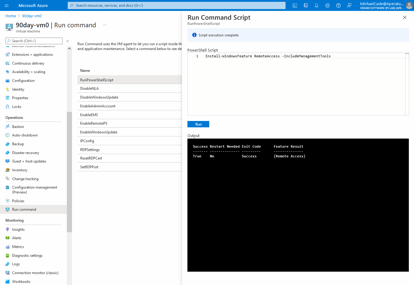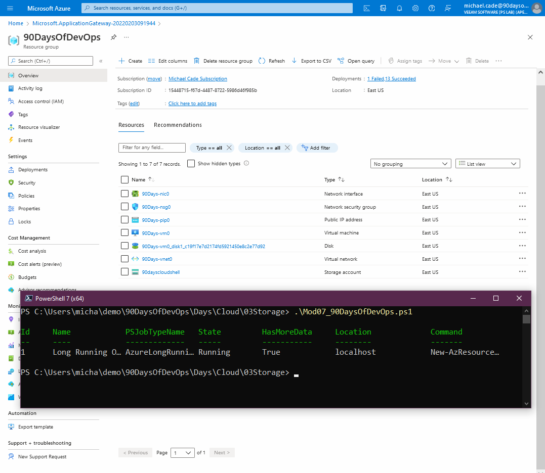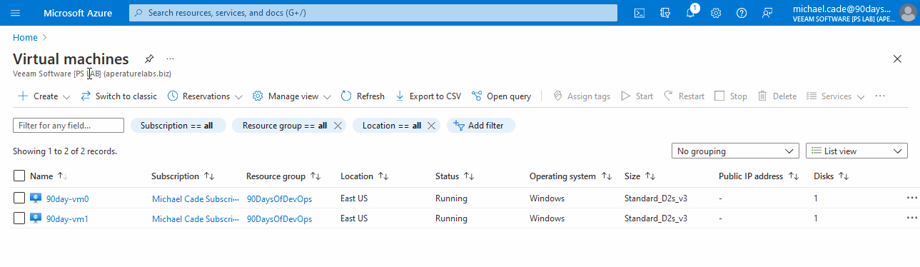 Tôi gặp một vấn đề khác ở đây là tài khoản của tôi không thể chạy tập lệnh với tư cách là người dùng trong nhóm 90DaysOfDevOps và vì không chắc lắm nên tôi đã quay lại tài khoản quản trị viên chính của mình. Nhóm 90DaysOfDevOps là chủ sở hữu của mọi thứ trong Nhóm tài nguyên 90DaysOfDevOps, vì vậy tôi rất muốn hiểu tại sao tôi không thể chạy lệnh bên trong VM?