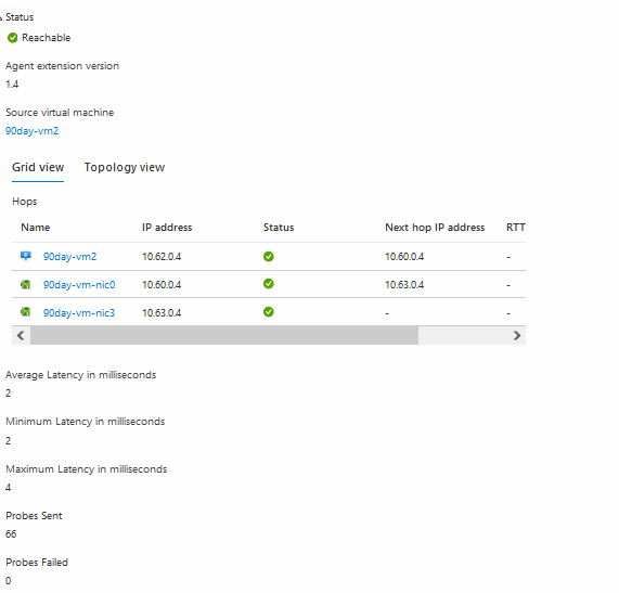 ^ Điều này được mong đợi vì hai spoke virtual networks không peer với nhau (network peering không mang tính bắc cầu).