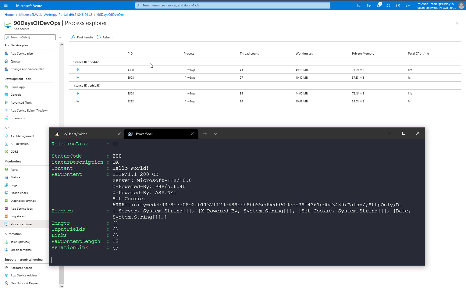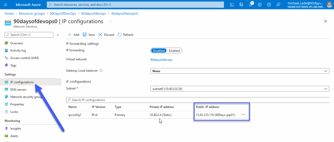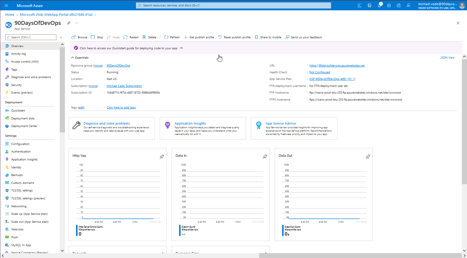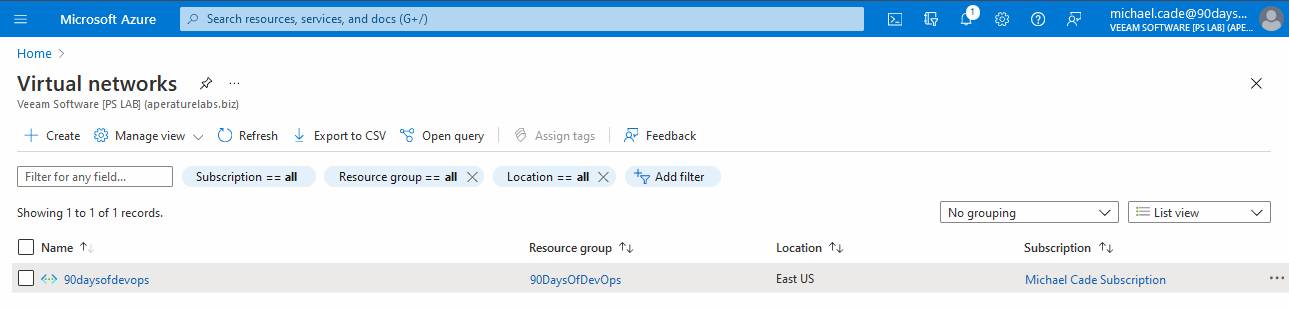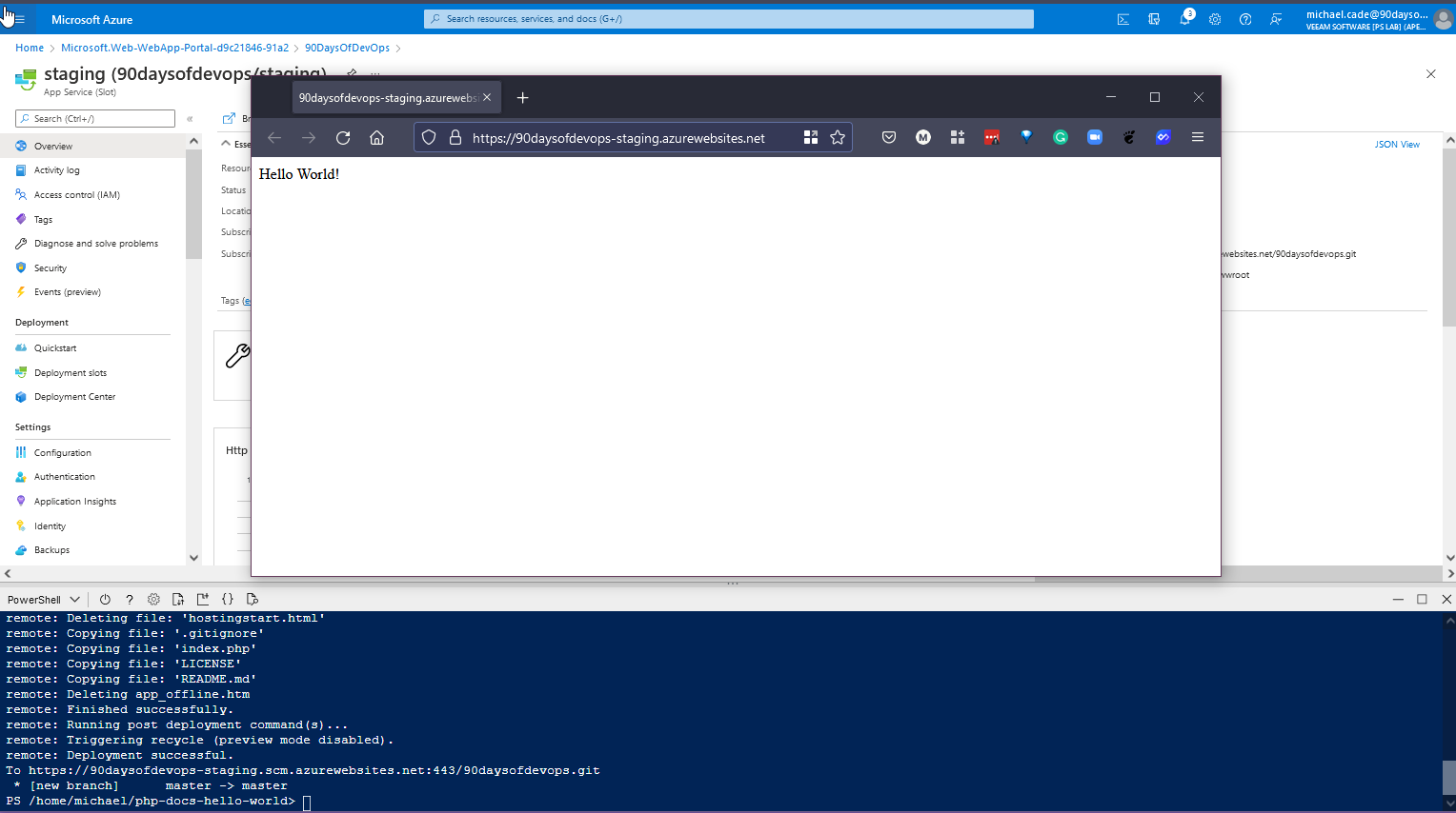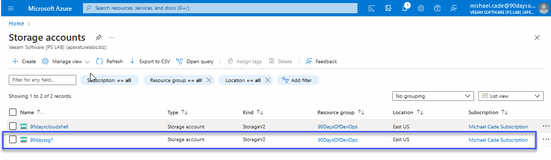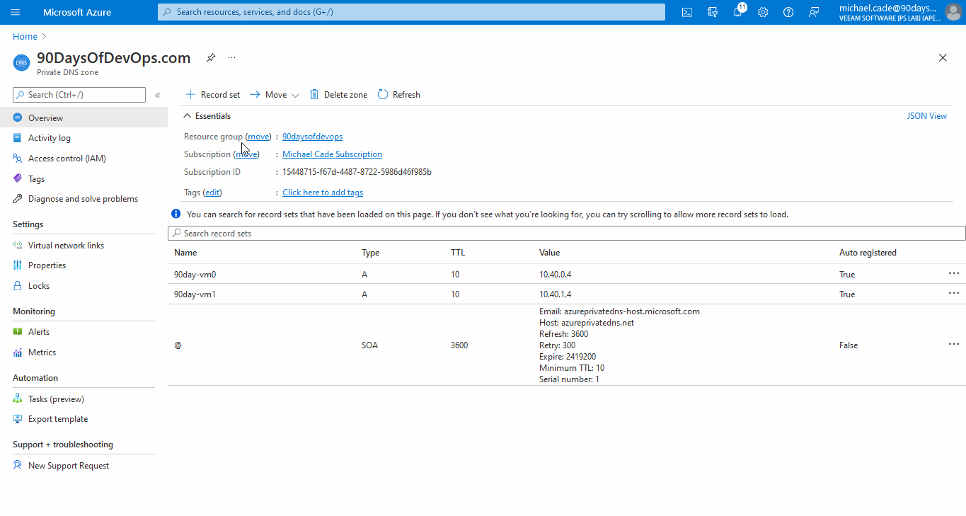 Sau đó, tôi có thể quay lại tài khoản michael.cade@90DaysOfDevOps.com của mình và tiếp tục phần này. Ở đây chúng ta đang chạy lại vài bài test tương tự nhưng bây giờ đã có thể truy cập được.