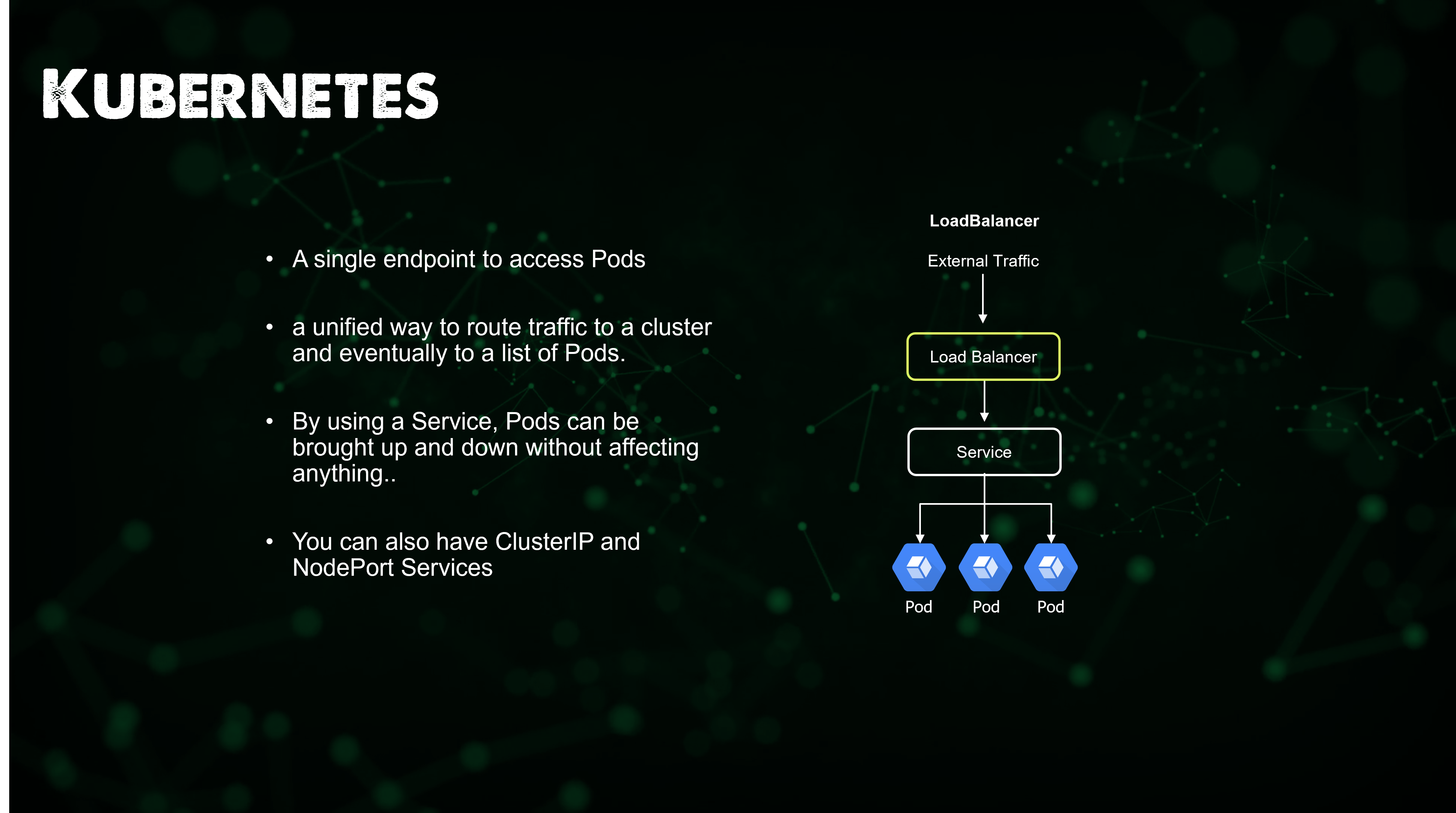 - Bằng cách sử dụng Services, các pods có thể được khởi động và tắt mà không ảnh hưởng đến bất cứ thứ gì.