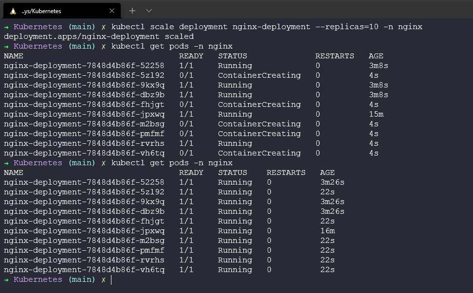 kubectl scale deployment nginx-deployment --replicas=10 -n nginx