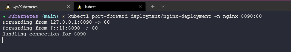 kubectl port-forward deployment/nginx-deployment -n nginx 8090:80