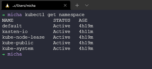 Hãy chạy lại lệnh để xem các namespaces có sẵn trong cluster của chúng ta kubectl get namespace và giờ bạn có thể thấy rằng chúng ta có namespace mới.