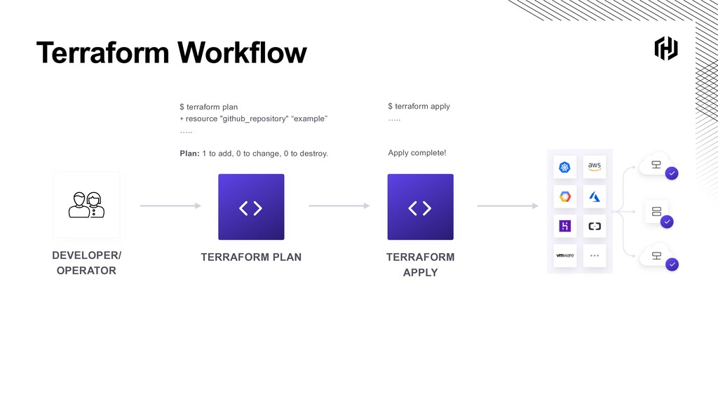 "Terraform là một công cụ phần mềm cơ sở hạ tầng dưới dạng mã mã nguồn mở cung cấp quy trình làm việc với CLI để quản lý hàng trăm dịch vụ điện toán đám mây. Terraform mã hoá các API của các nhà cung cấp thành các tệp cấu hình khai báo"