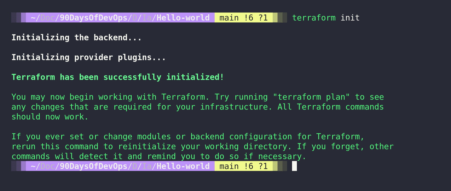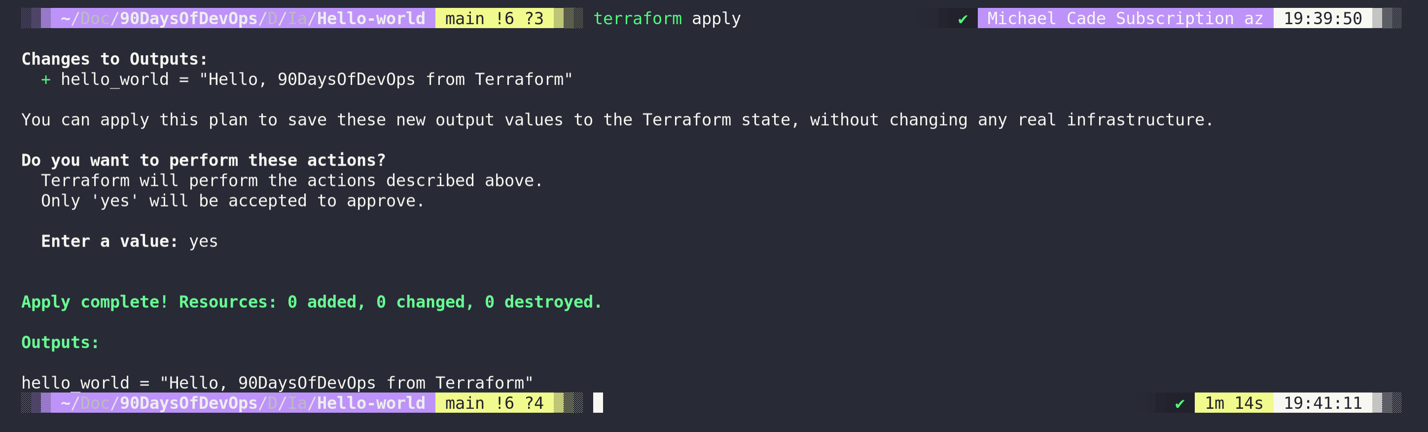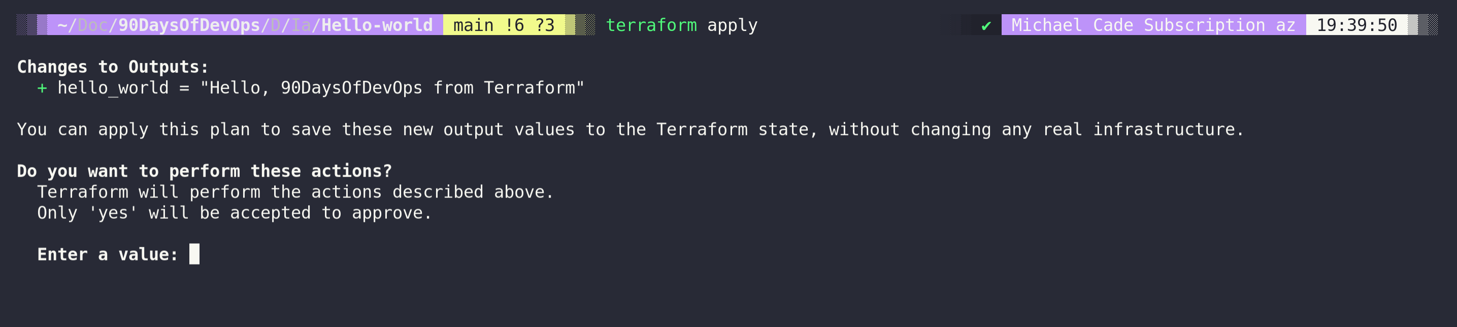 "value": "Hello, 90DaysOfDevOps from Terraform",