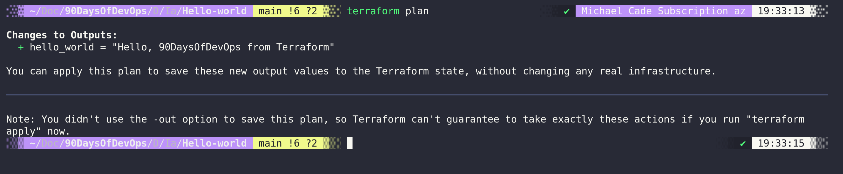 value = "Hello, 90DaysOfDevOps from Terraform"