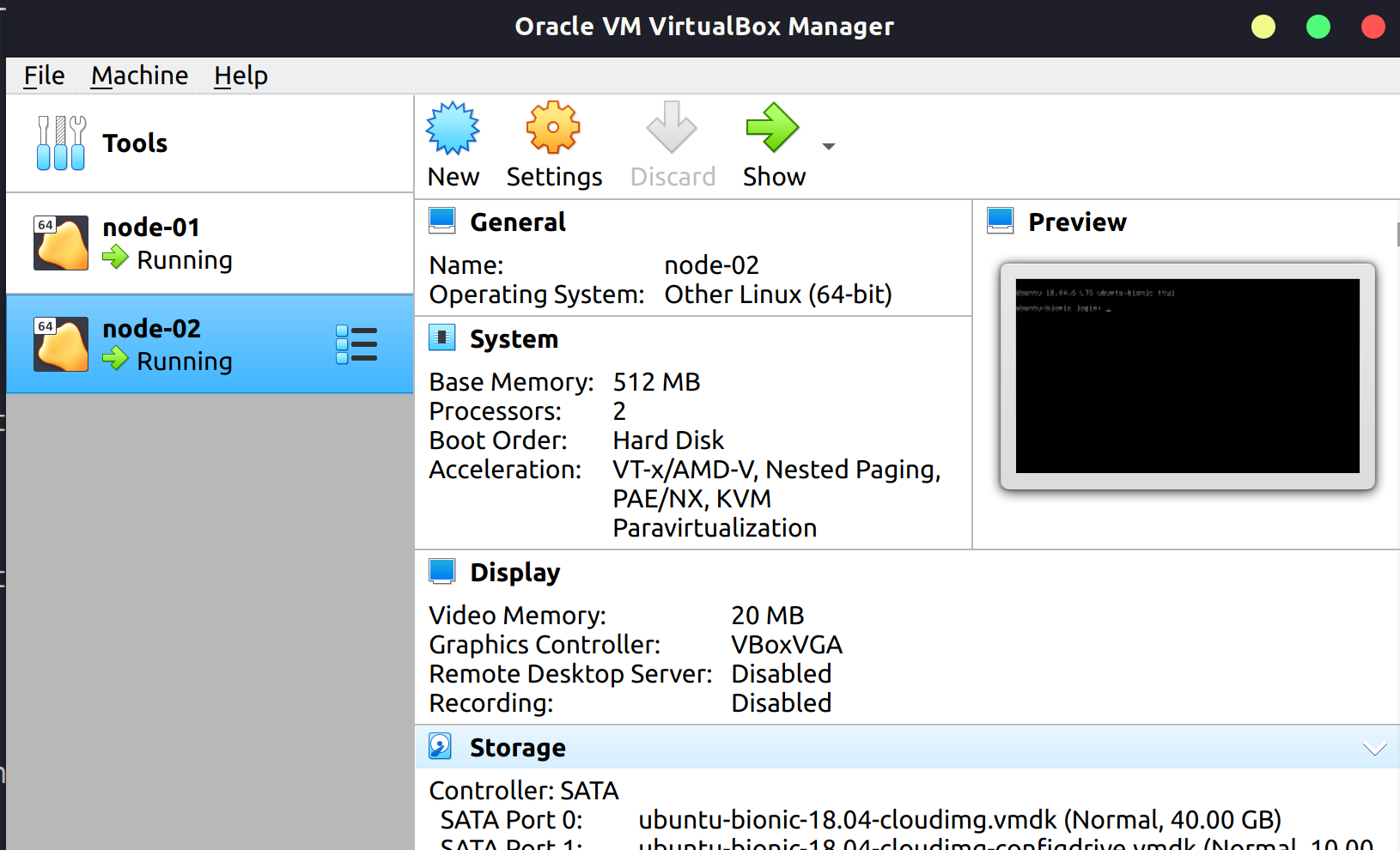 Trong Virtualbox, bạn sẽ nhìn thấy 2 máy ảo mới được khởi tạo.