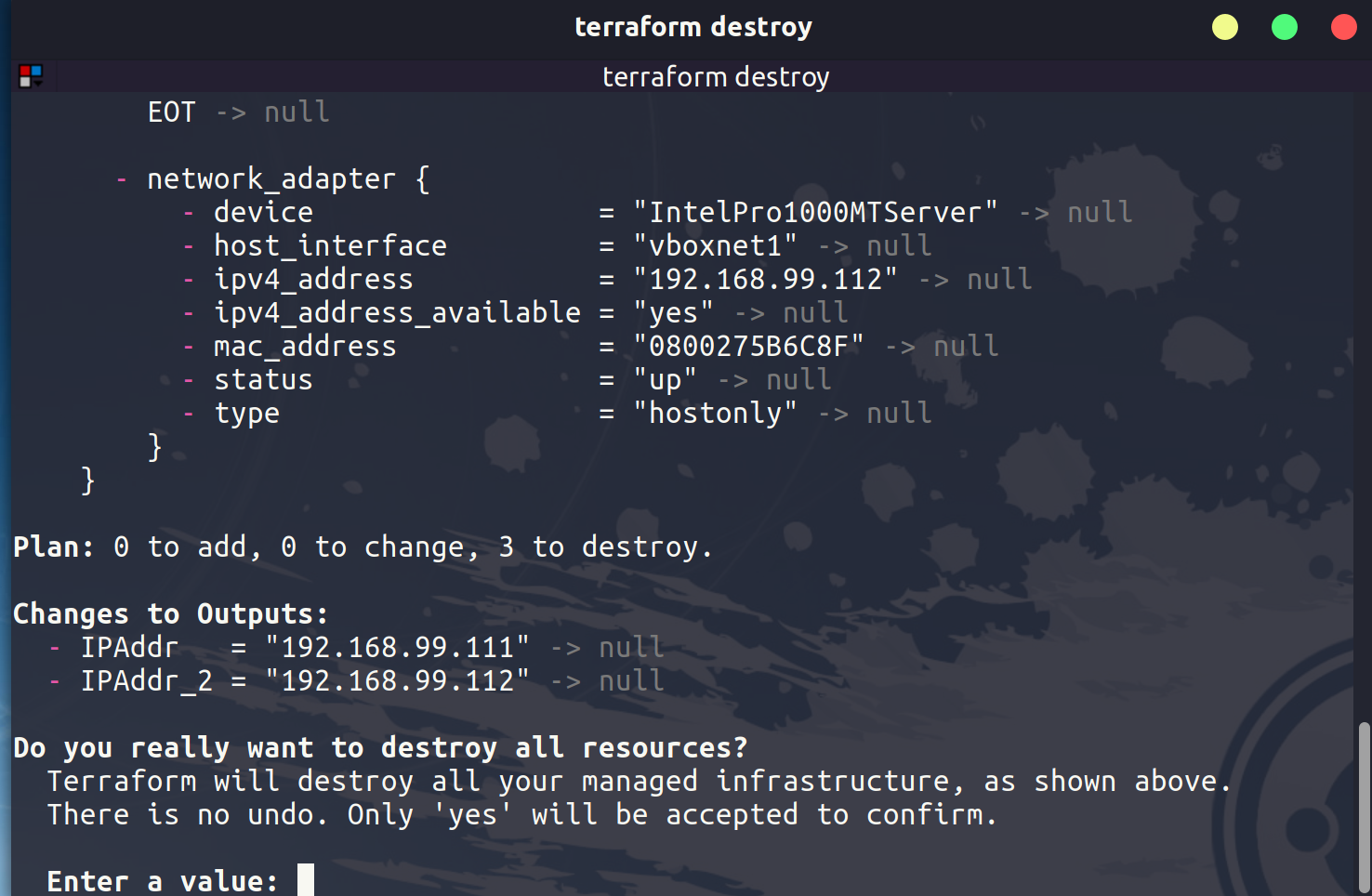 Khi mọi thứ đã hoàn thành, chúng ta có thể dọn dẹp bằng cách sử dụng terraform destroy, tất cả máy ảo sẽ được xóa bỏ sau đó.
