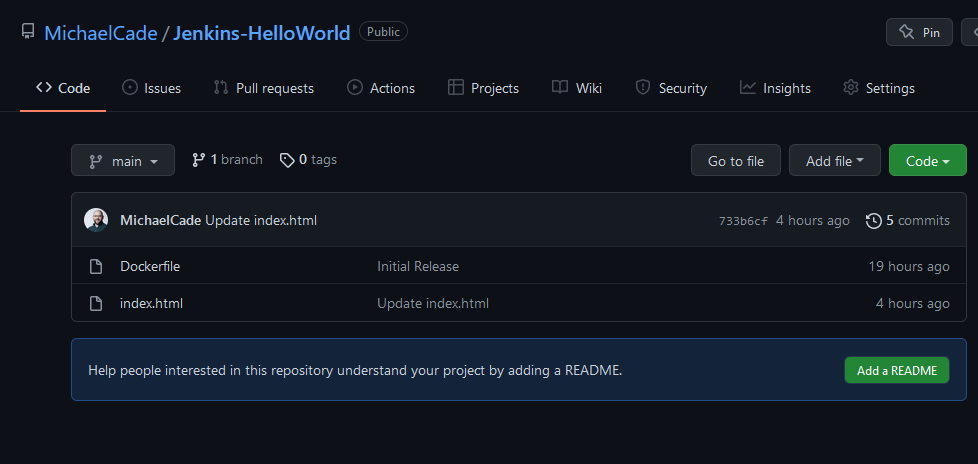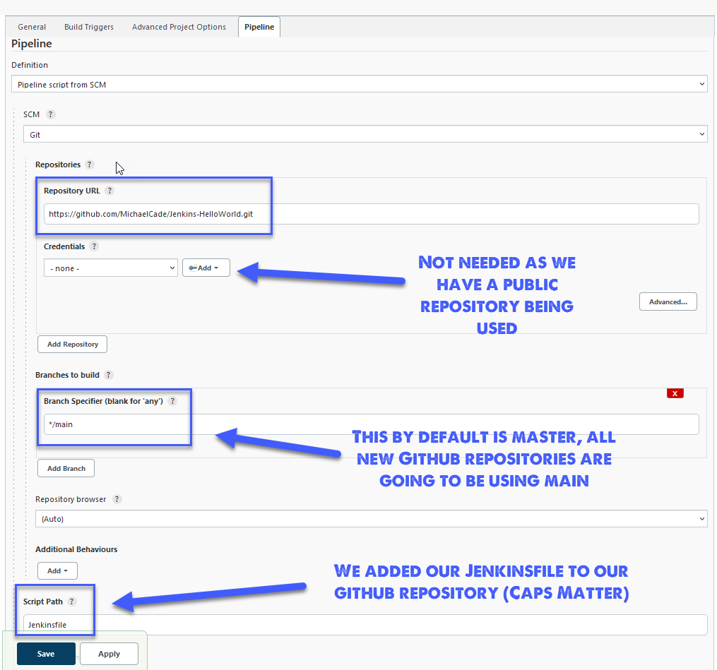 Để tham khảo, chúng ta sẽ sử dụng https://github.com/MichaelCade/Jenkins-HelloWorld.git làm URL của kho lưu trữ.