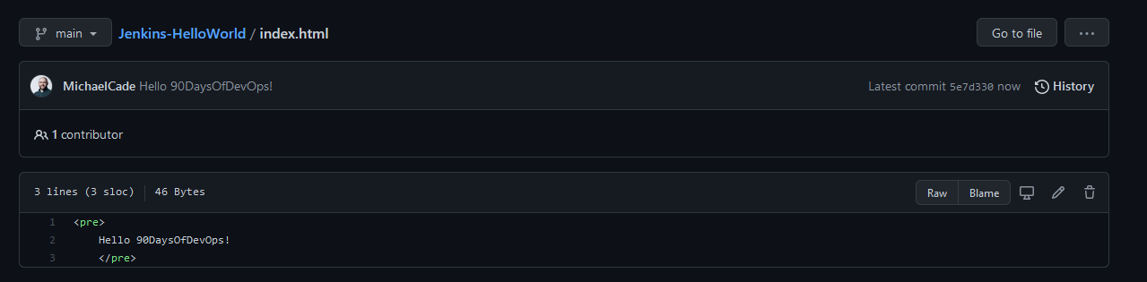 Bây giờ hãy tạo và cập nhật tệp index.html ở trong kho lưu trữ Github như bên dưới, tôi sẽ để bạn tìm hiểu phiên bản 1 của tệp index.html có những gì