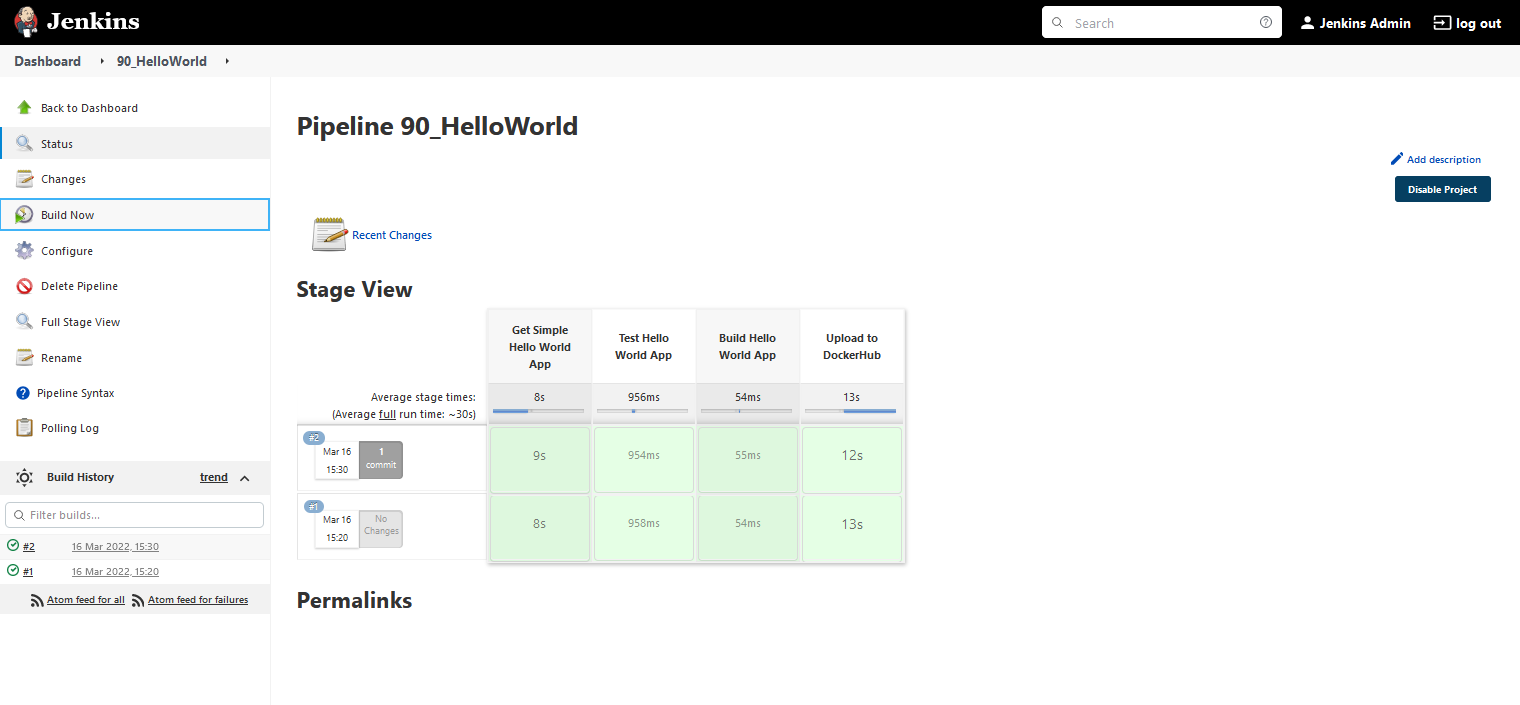 Nếu chúng ta quay lại Jenkins và chọn "Build Now" một lần nữa, chúng ta sẽ thấy build #2 có thành công hay không.