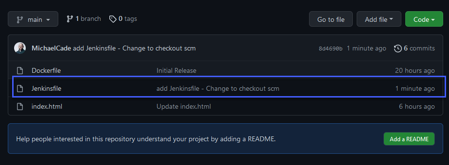 Với nội dung trên, đây là những gì chúng ta đang sử dụng làm nguồn trong Pipeline của mình, giờ đây chúng ta cũng muốn thêm kịch bản Jenkins Pipeline đó vào kho GitHub của chúng ta.