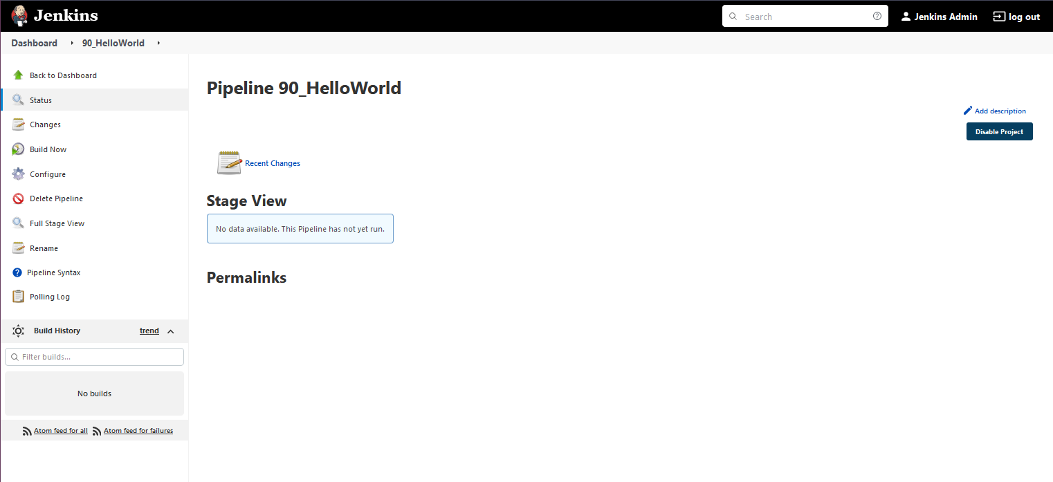 Ở giai đoạn này, Pipeline của chúng ta chưa hề chạy và giao diện giai đoạn sẽ trông như sau.