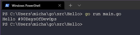 fmt.Println("Hello #90DaysOfDevOps")