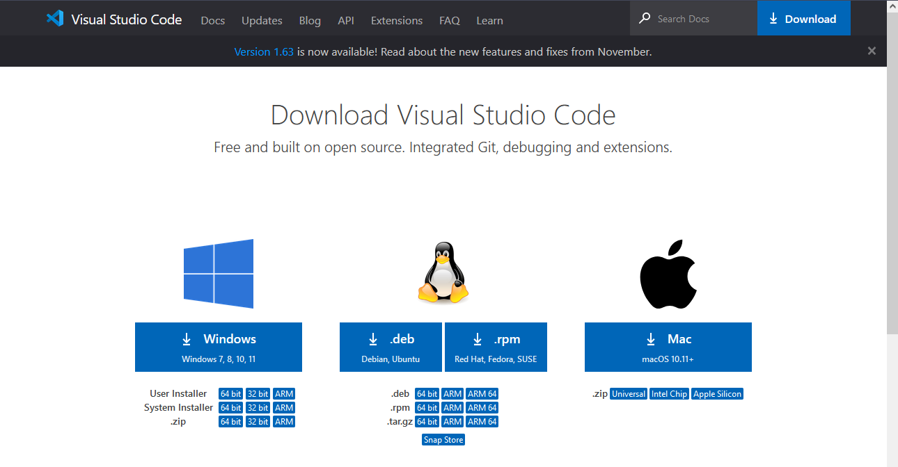 Nếu bạn chưa tải xuống và cài đặt VSCode trên máy trạm của mình thì bạn có thể thực hiện việc này bằng cách vào đây. Như bạn có thể thấy bên dưới, bạn có các lựa chọn cho các hệ điều hành khác nhau.