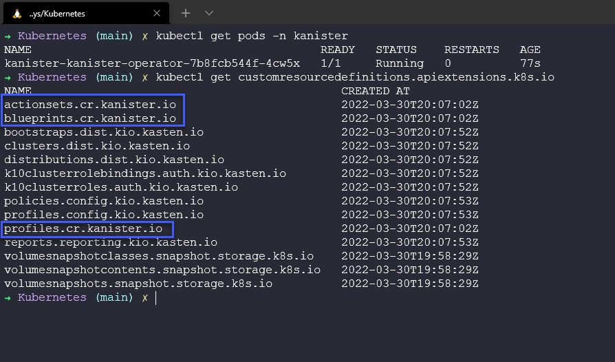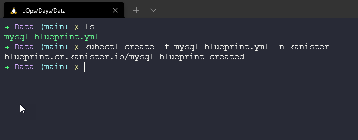 Để thêm điều này, chúng ta sẽ sử dụng lệnh kubectl create -f mysql-blueprint.yml -n kanister