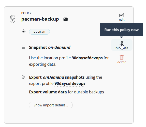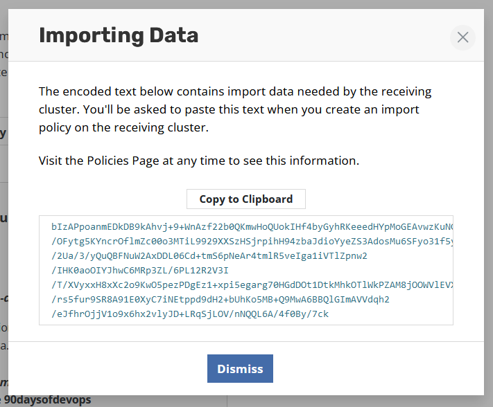 Ở cuối chính sách được tạo, bạn sẽ thấy "Show import details", chúng ta cần chuỗi này để có thể nhập vào cụm dự phòng của mình. Sao chép nó vào nơi an toàn ngay bây giờ.