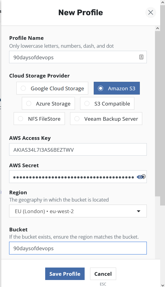 Điều đầu tiên chúng ta cần làm là thêm một object storage bucket làm target location để các bản sao lưu của chúng ta đến. Điều này không chỉ đóng vai trò như một vị trí ngoài site mà chúng ta còn có thể tận dụng nó làm nguồn dữ liệu khôi phục thảm họa.
