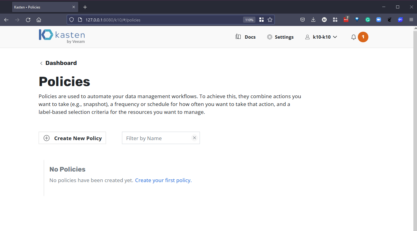 kubectl --namespace kasten-io port-forward service/gateway 8080:8000